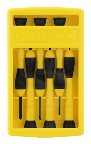 Stanley 0-66-052 Jeu de 6 tournevis de précision 6pc screwdriver set. 6-piece precision screwdriver set featuring swivel-head handles. Tough plastic shafts and soft